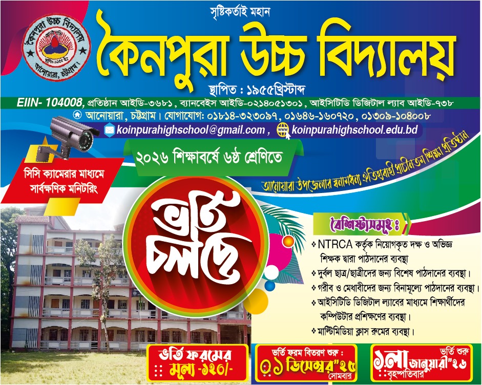 • ২০২৫ সালের ষষ্ঠ হতে নবম শ্রেণীর বার্ষিক এবং এস এস সি নির্বাচনী পরীক্ষা আগামী ২০ নভেম্বর ২০২৫ ইং তারিখ হতে শুরু হবে। সকল শিক্ষার্থীকে তাদের নির্ধারিত ফি ও বকেয়া পরিশোধ পূর্বক পরীক্ষায় অংশ নিতে নির্দেশ প্রদান করা হল। বকেয়া পরিশোধ না করে কোন শিক্ষার্থী পরীক্ষায় অংশ নিতে পারবেনা।
